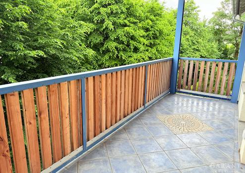 - großer Balkon (gefliest mit Mosaikmuster, mit Licht & Steckdosen)
