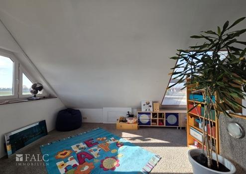 Das nachträglich ausgebaute Studio im Dachgeschoss präsentiert sich besonders hell und großzügig und eignet sich hervorragend als weiteres Schlafzimmer, Büro oder kreativer Rückzugsort.