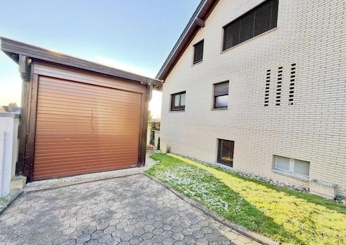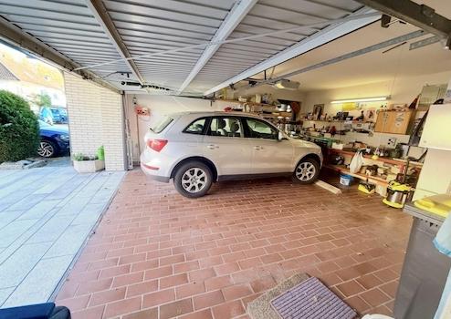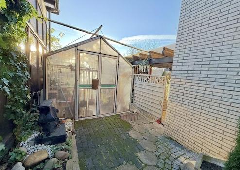 Vom Garten und von der Straßenseite kommt man noch zur Hochgarage welche bisher für das Wohnmobil genutzt wurde. Daneben befindet sich noch ein Gewächshaus welches aber derzeit als Werkzeug und Hobbyraum genutzt wird.