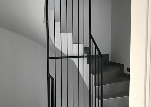 Feinsteinfliesen, Betontreppe bis in DG.
