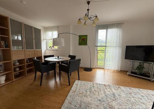 Stadtvilla Nizza, Moderne 3 Zimmer Wohnung mit Balkon und Stellplatz.Wohnen: geräumiges Wohnzimmer mit Zugang zum Balkon. Esstisch mit 4 Plätzen.Küche: voll ausgestattet Küche mit Hausrat und Spülmaschine Schlafen: ...