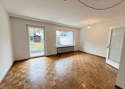 Das helle Wohnzimmer bietet großzügigen Platz für einen Wohn- und Essbereich und schafft eine angenehme Atmosphäre. Von hier aus gelangen Sie auf die Terrasse und in den Garten, der zusätzlichen Freiraum bietet.