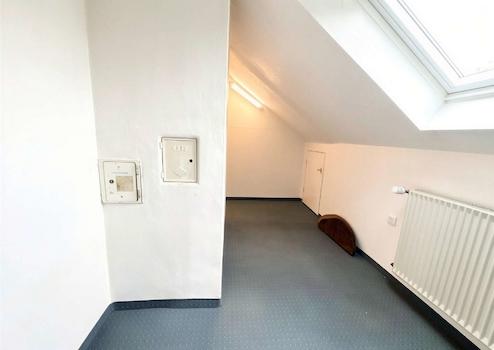 Das ausgebaute Dachgeschoss bietet ein großes, helles Zimmer, ideal als Studio, Homeoffice oder zusätzlicher Wohnraum. Eine Kammer sorgt für praktischen Stauraum.