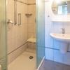 Die Wohnung verfügt über ein komfortables Schlafzimmer, das über einen kleinen, separaten Flur erreichbar ist. In diesem Flur befindet sich ein tiefer, großzügiger Einbauschrank, der vielfältige Abstellmöglichkeiten bietet und als praktischer Stauraum genutzt werden kann. Das angrenzende Badezimmer ist mit einer Dusche ausgestattet und rundet den Wohnkomfort ab.