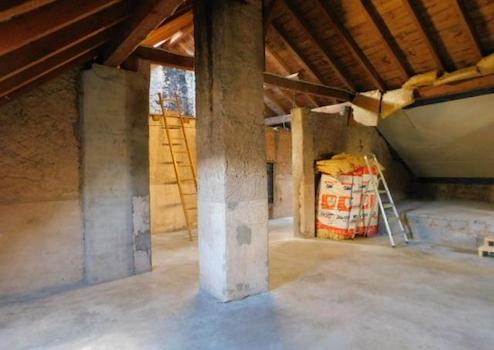 Darüber befindet sich ein großer - zum Dachstuhl hin offener Dachboden/Speicher, in dem noch ein alter Räucherofen installiert ist und der jede Menge Platz bietet, so dass ein Ausbau zu Wohnraum jederzeit machbar wäre.