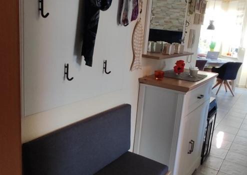 Die Einrichtung ist neuwertig. Wohn- Essbereich sind modern eingerichtet. Das Sofa hat einen Motor für Relaxliege und Fernsehsessel. Kühler Schlafzimmerbereich zur Nordseite.