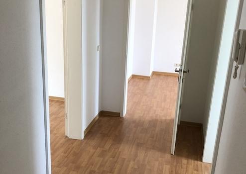 Die 3-Zimmer-Wohnung befindet sich im 3. Obergeschoss/ Dachgeschoss eines sanierten Mehrfamilienhauses. Vom Eingangsbereich der Wohnung gelangt man in den Flur, von dem alles Zimmer sowie das Bad abgehen.