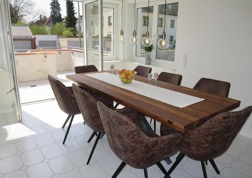 Balkon, Terrasse, Garten, Vollbad, Duschbad, Einbauküche, Gäste-WC, Kamin, Barrierefrei, Parkett, Fliesen