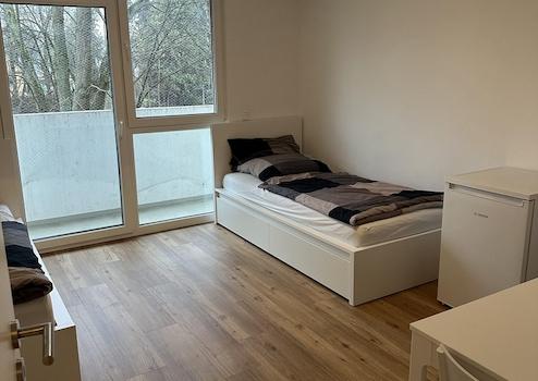 Das möblierte WG-Zimmer befindet sich in einer frisch sanierten Wohnung in der Julius-Brecht-Straße 5 in Frankfurt.