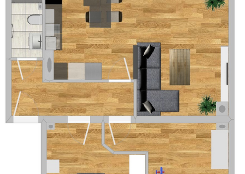 Die Wohnfläche von 66qm verteilt sich auf zwei helle Zimmer, einem