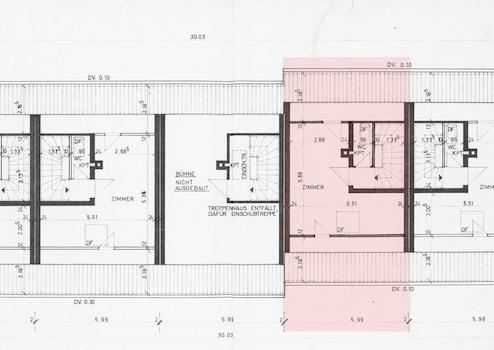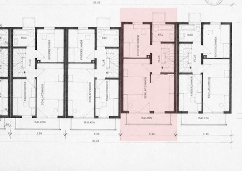 Über dem Garagenbereich verfügt jedes der insgesamt fünf Reihenhäuser über eine bepflanzte Terrasse.