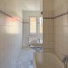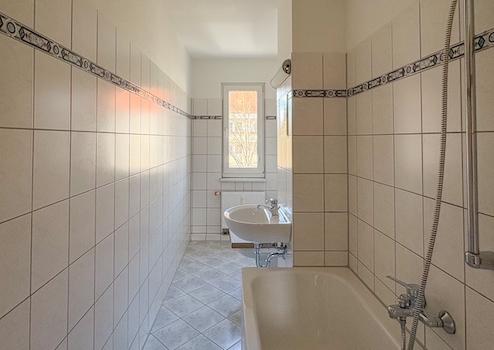 - gefliestes Wannenbad mit Fenster und heller Gestaltung