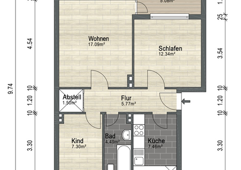 - 3 Zimmer, Küche, Bad, Abstellraum - 58,06 qm Wohnfläche