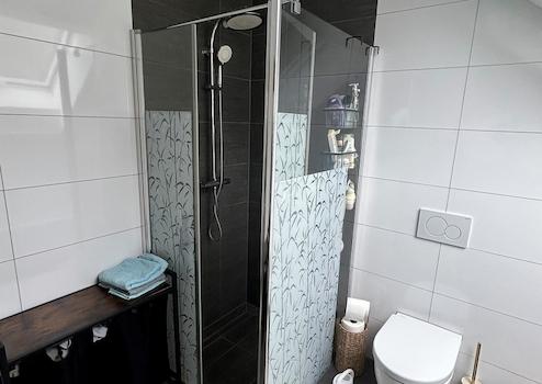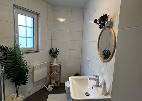 Ergänzt wird das Erdgeschoss durch ein Gäste-WC mit Dusche sowie einen praktischen Abstellraum.
