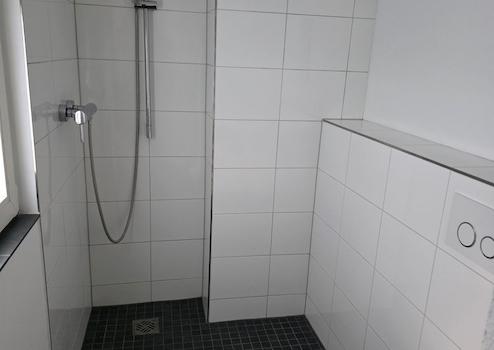 Duschbad, Laminat, Fliesen