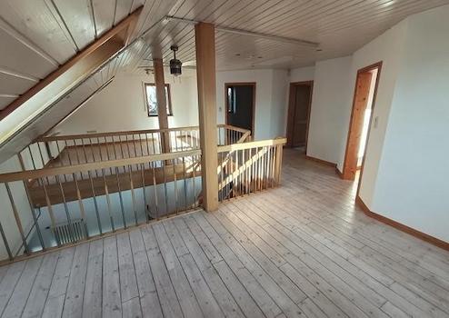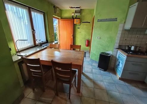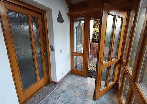 Naturholz Fenster und Türen, grosszügiger Windfang. Zentraler Anschluss für Holzofen, Deckenventilator. im Versorgungsraum Platz für Waschmaschine u. Trockner.