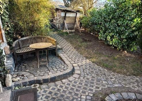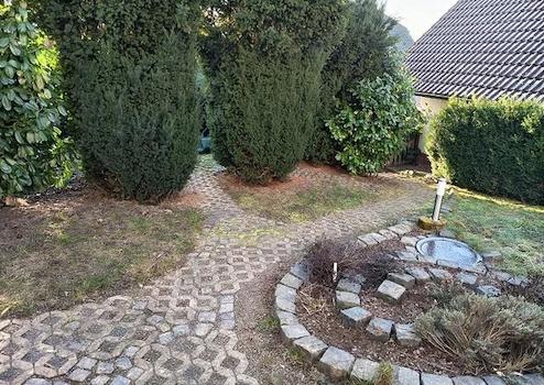 Beheizbares 24m2 massives Nebengebäude (Gästehaus, EG +Dachgeschoss), ca. 7 m2 Blockbohlen Hütte für Gartengeräte. Ein künstlicher Teich mit üppiger Vegetation schafft eine Oasen Atmosphäre. Verschiedene Plätze laden zum Ruhen oder Party ein. Im Garten gibt es Obstbäume und Beerensträucher