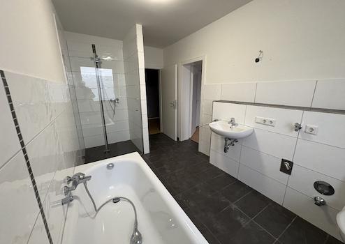 - Bad von ca. 11 m² mit Wanne und Dusche mit Glastür, Waschmaschinenanschluss vorhanden, Fenster