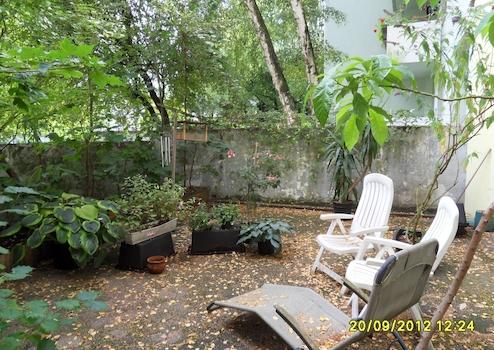 Zur Wohnung gehört ein kleiner und begrünter Innenhof.