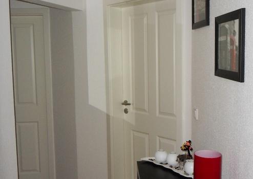 In allen Zimmern bis auf Küche und Badezimmer ist Echtholzparkett in Eiche verlegt. Sämtliche Zimmertüren sind weiße neue Kasettentüren.