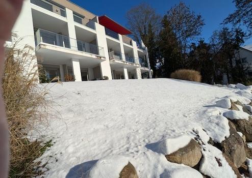 Das Haus entspricht einem KFW45 Effizienzhaus. Die 6 Wohnungen wurden in interessanter offener Architektur erbaut und befinden sich auf insgesamt 3 Ebenen. Aufgrund der Süd-Ausrichtung und der großzügigen Fensterflächen/Schiebeelemente gelangt viel Licht in alle Räume.
