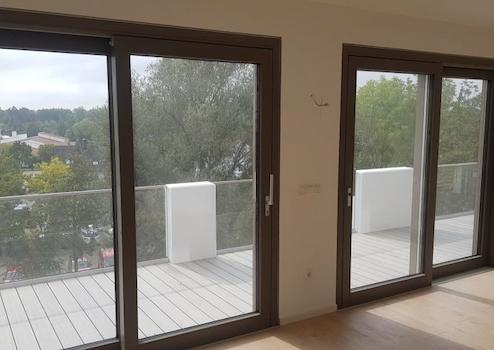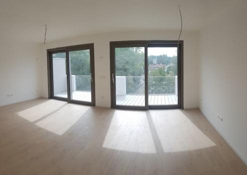 Besonders schön sind großzügige Terrassen mit hochwertigem Belag, Glasgeländer und sehr schönem Ausblick zum Donauwald