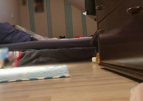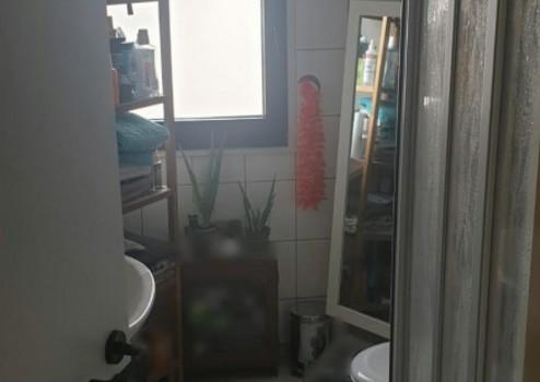Der Boden ist weiß gefliest. Auf der Empore ist Laminat verlegt. Das Badezimmer verfügt über eine Dusche und hat ein Fenster.
