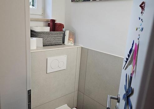 Die Immobilie verfügt über eine hochwertige, offene Einbauküche mit großzügigem Grundriss. Zur Ausstattung gehören außerdem drei WCs und zwei Bäder, die eine komfortable Nutzung für Familien ermöglichen. In zwei Zimmern des 1. und 2. Obergeschosses sorgen passgenaue, hochwertige Einbauschränke für optimale Stauraumnutzung und ein harmonisches Raumgefühl.