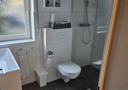 Freistehendes, modernes Haus, zwei getrennte Eingänge. Hausfläche ca. 220 qm WFL u. ELW ca. 77 qm WFL. Die ELW ist im Erdgeschoss und Souterrain. Nutz- und Stellflächen 82 qm, Dachgeschoss ausbaubar. Dachflächenfenster/ ...