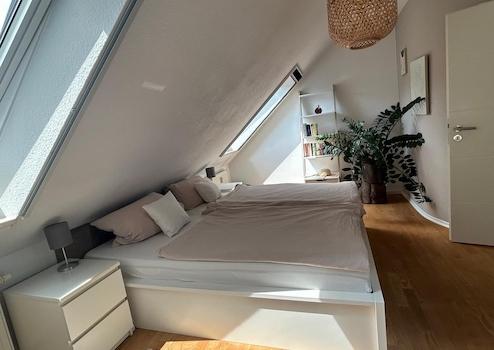 Die Wohnung ist für Leute geeignet, die Dachschrägen mögen und den Blick in den Giebel mögen.