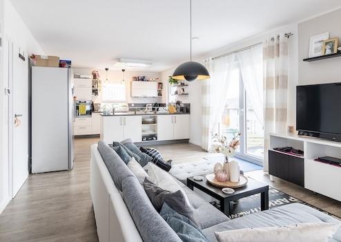 Dieses zeitgemäße Eigenheim wurde speziell auf die Ansprüche einer jungen Familie abgestimmt. Im Mittelpunkt steht der großzügige Wohn-, Ess- und Kochbereich von etwa 40 m², der durch seine helle und freundliche ...