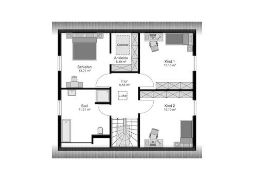 Die Lage der Treppe und des Haustechnikraumes sind beim Winterzauberangebot fixiert.