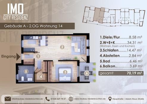 Die angebotene Wohnung liegt im Gebäude A und verfügt über einen Balkon. Ferner gehört zur Wohnung ein Abstellraum im Untergeschoss.
