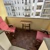 The spacious living room with original wooden floorboards offers plenty of space for living and working. The loggia faces the street and is south-facing (meaning it is very bright and gets a lot of sun). Because the loggia is covered, the space can also be used when it rains. Large windows and direct access to the loggia provide plenty of light and a pleasant atmosphere.