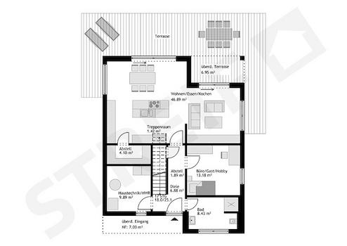 Das Streif City Haus wird im Standard KFW 40 PLUS ausgeführt. KfW Effizienshaus inkl. Haustechnik aus dem STREIF-Programm in der Ausbaustufe FF+ inklusive einer gedämmten Fundamentplatte.