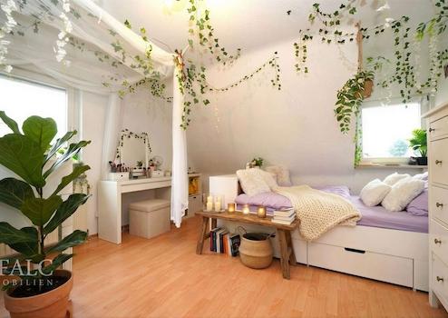 Im Obergeschoss stehen drei weitere gut geschnittene Schlafzimmer zur Verfügung. Das Tageslichtbad mit Badewanne lädt zu entspannten Wohlfühlmomenten ein.
