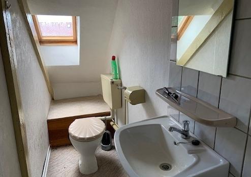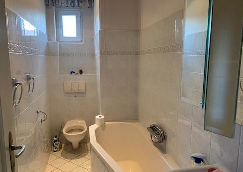 Die Wohnung im Erdgeschoss ist vermietet. Auch sie hat 3 Zimmer, eine Küche und ein Badezimmer mit Badewanne. Auf Wunsch des Mieters haben wir keine Fotos veröffentlicht.
