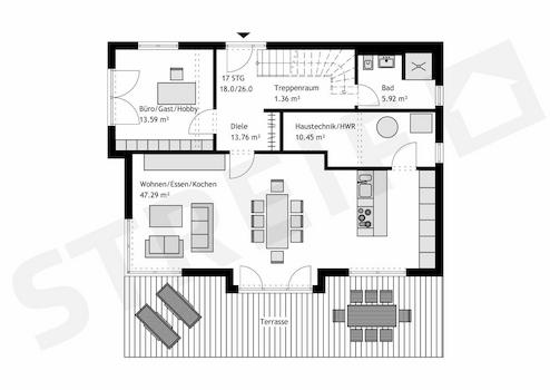 - Inkl. STREIF-Luft-Wasser-Wärmepumpen-Technologie mit integrierter Lüftungsanlage mit Wärmerückgewinnung