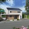 Das Einfamilienhaus ist modern und elegant in der Architektur. Auf dem Dach des Carports entsteht ein großzügiger Balkon für die Räume im Obergeschoss. Durch den erhöhten Kniestock ergibt sich für die Räume im Obergeschoss eine bessere Nutzung der Stellfläche und Bewegungsfläche. Der Grundriss des Energiesparhauses bietet im Erdgeschoss einen großzügigen Wohn-/Essbereich mit einer offenen Küchengestaltung.