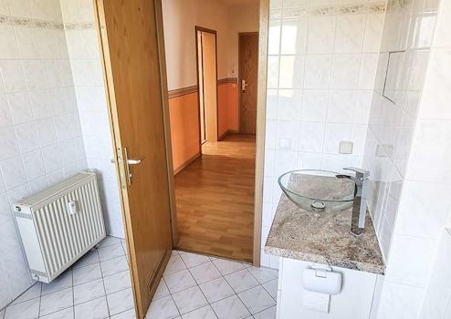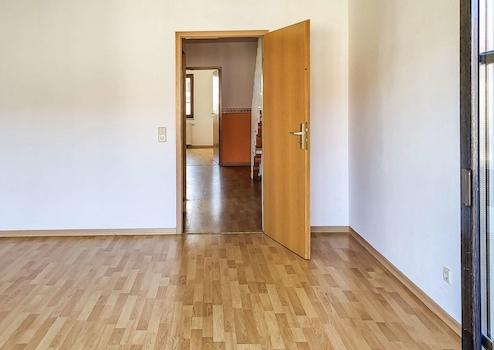 Die nach Norden gelegenen Räume – darunter das Schlafzimmer sowie ein weiteres Zimmer – sorgen selbst an warmen Sommertagen für ein angenehm kühles Wohnklima. Mittelpunkt der Wohnung ist das großzügig geschnittene Wohnzimmer, das vielfältige Gestaltungsmöglichkeiten für individuelle Wohn- und Einrichtungskonzepte bietet. Das nach Süden ausgerichtete Wohnzimmer bietet direkten Zugang zum Balkon und eröffnet einen angenehmen Weitblick über das Wohnareal bis in Richtung Wurzen.