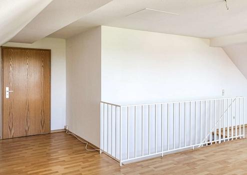Ein besonderes Highlight stellt der eindrucksvolle Raum im Obergeschoss dar: Mit ca. 33 m² Wohnfläche. Ob als zusätzliches Schlafzimmer, Homeoffice, Hobbyraum oder privater Rückzugsort – die Nutzungsmöglichkeiten sind äußerst vielfältig. Das helle Obergeschoss ist über eine komfortable Holztreppe erreichbar.