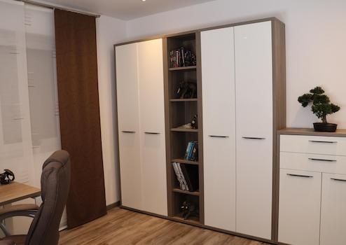 Im Obergeschoss befindet sich 1 Schlafzimmer mit eigenem Badezimmer und begehbarem Kleiderschrank und 2 Kinderzimmer mit einem Badezimmer zwischen den Kinderzimmern. Jedes Zimmer verfügt über eine individuell steuerbare Fußbodenheizung, um Ihnen höchsten Komfort zu bieten. Zusätzlich sind elektrische Rollläden in jedem Zimmer vorhanden, die Ihre Privatsphäre und Lichtverhältnisse nach Wunsch regulieren. Die moderne Luftwärmepumpe sorgt für eine nachhaltige und effiziente Beheizung des Hauses.