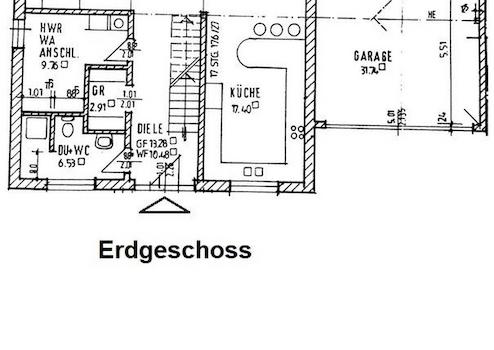 In einer ca. 32 m² großen Doppelgarage und einem Abstellraum dahinter finden problemlos zwei Fahrzeuge und Fahrräder bzw. eine Werkstatt Platz. Das Tor lässt sich mit einem Toröffner im Haus, in der Garage und mit einer Funkfernbedienung öffnen.