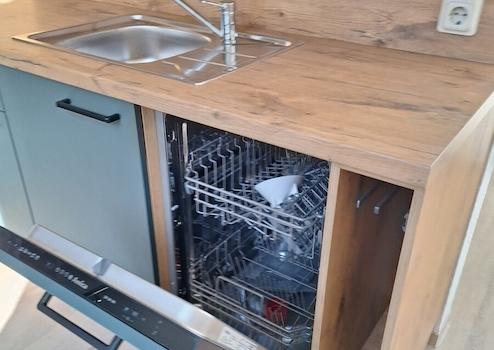Die Küche ist mit nagelneuen Möbeln und Elektrogeräten ausgestattet, die keine Wünsche offen lassen.