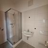 Das Badezimmer ist mit Fliesen ausgestattet und verfügt über eine Dusche und einen Anschluss für die Waschmaschine.