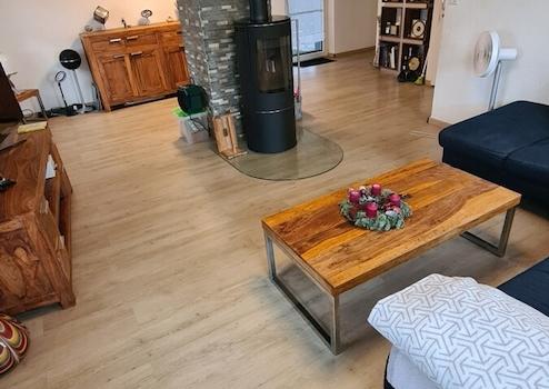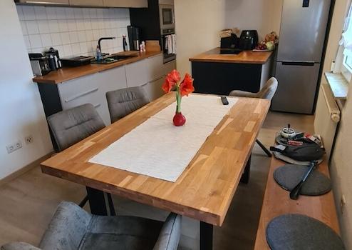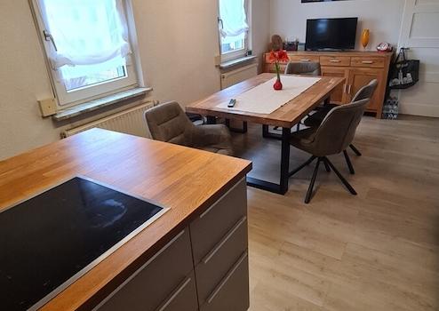 Ein neuwertiger Schwedenofen im Wohnbereich sowie eine neuwertige Einbauküche sind im Kaufpreis enthalten.