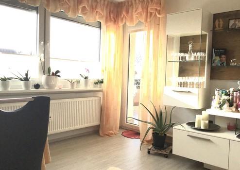 Wohnzimmer mit Zugang zur Loggia Südseite mit Markise