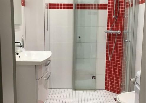 - innen liegendes Duschbad mit Warmwasserboiler und Waschmaschinen Anschluss