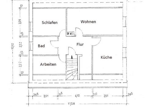 Dadurch, dass sich die Einliegerwohnung über die gesamte 1. Etage des Hauses erstreckt, hat sie eine Grundfläche von ca. 85 m². Da auch gemütliche Dachschrägen dazu gehören, ergibt sich nach der Wohnflächenverordnung (WoFlV) eine großzügige Wohnfläche von ca. 65 m².