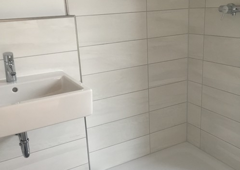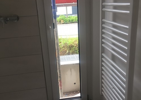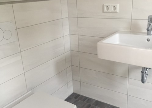 Die Einbauküche ist ausgestattet mit Siemens Elektrogeräten, die Objekte im Badezimmer sind von Villeroy & Boch. Die Dusche ist bodentief mit Echtglasabtrennung.